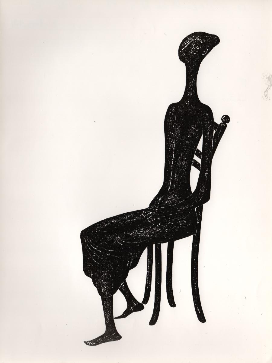 Ασπρόμαυρη εκτυπωμένη φωτογραφία έργου της Βάσως Κατράκη. Στην πίσω όψη, επιγραφές. Στην πίσω όψη επιγραφή.