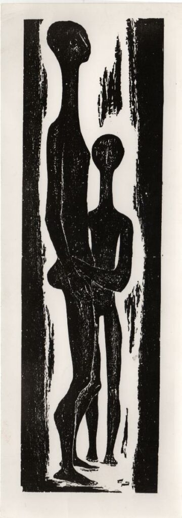 Ασπρόμαυρη εκτυπωμένη φωτογραφία έργου της Βάσως Κατράκη. Στην πίσω όψη, επιγραφές.
