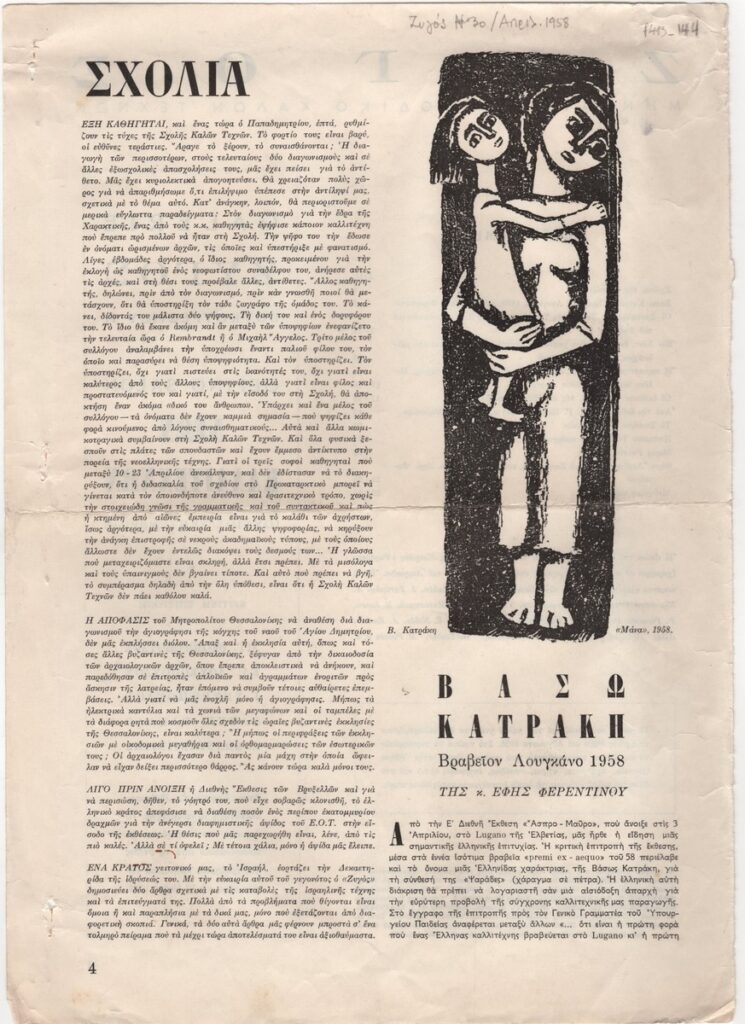 «Βάσω Κατράκη. Βραβείον Λουγκάνο 1958»