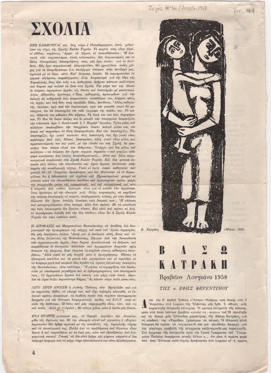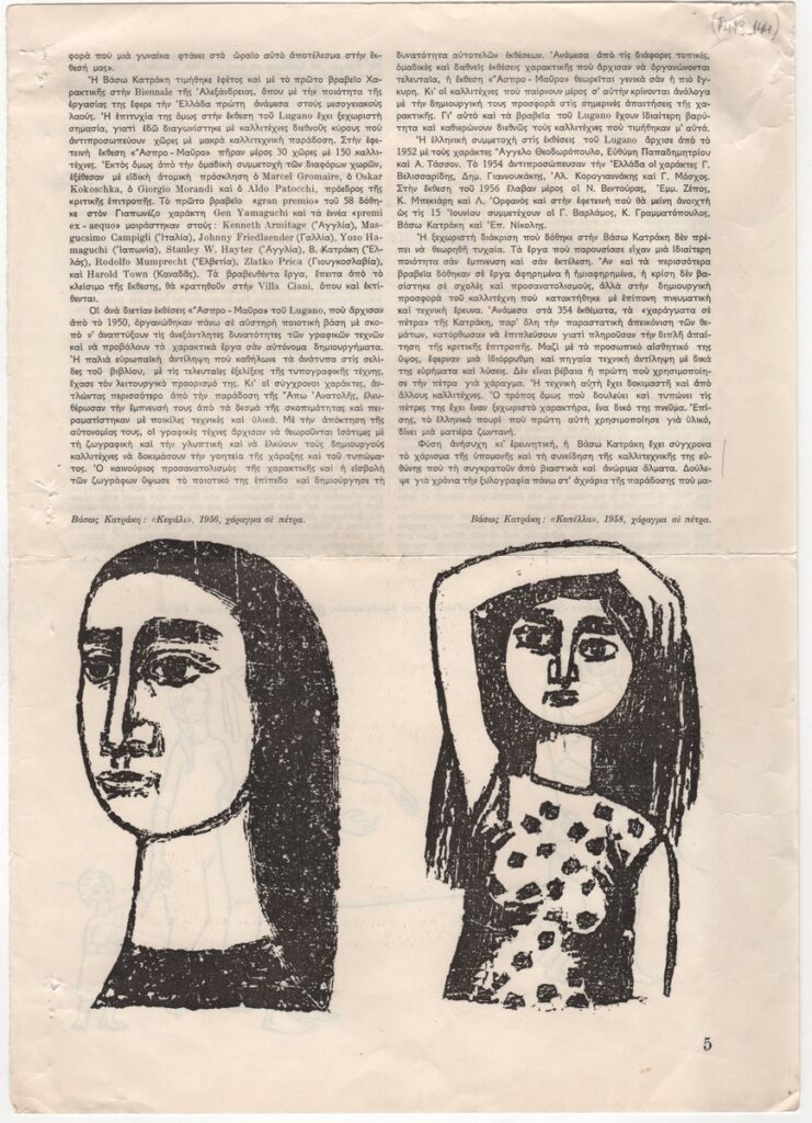 Κριτική της Έφης Φερεντίνου για το έργο της Βάσως Κατράκη με αφορμή της βράβευσή της στην Ε’ Διεθνή Έκθεση “Άστπρο-Μαύρο” στο Lugano της Ελβετίας.