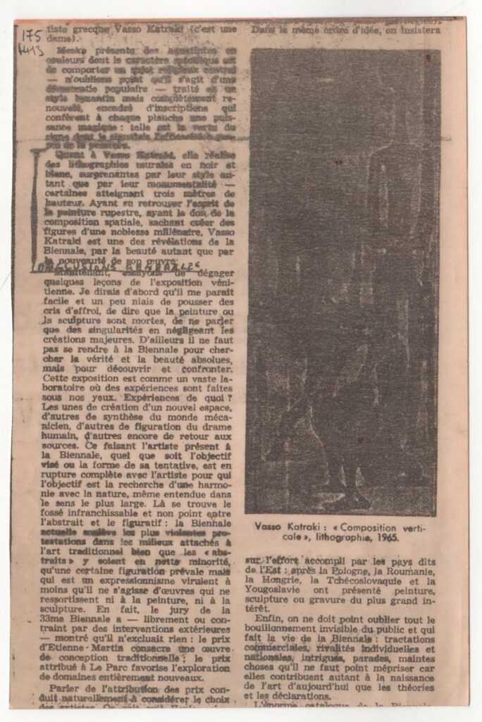 Φωτοαντίγραφο αποκόμματος εντύπου. Απόσπασμα άρθρου με κριτική για το έργο της Βάσως Κατράκη.