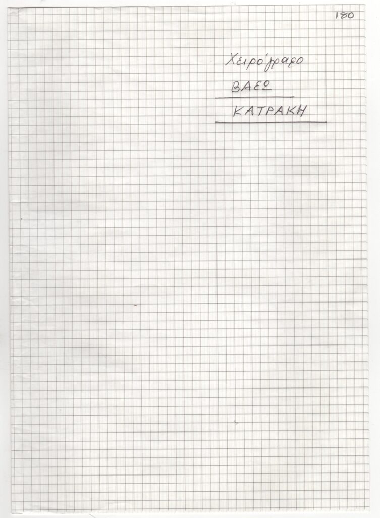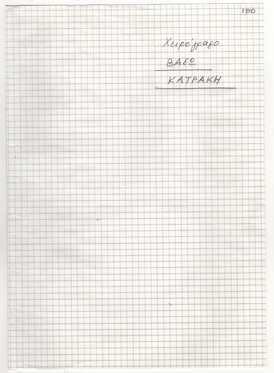 Κείμενο, χειρόγραφο και δακτυλόγραφο με χειρόγραφες διορθώσεις, σε χαρτί διαφόρων διαστάσεων. Σημειώσεις για το κείμενο του βιβλίου που ετοίμαζε ο Τώνης Σπητέρης για τη χαράκτρια Βάσω Κατράκη.