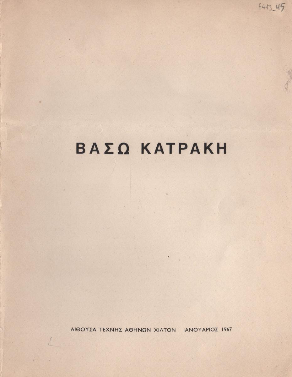Έντυπο της ατομική έκθεση χαρακτικής της Βάσως Κατράκη στην Αίθουσα Τέχνης Αθηνών – Χίλτον. Περιέχει σύντομο βιογραφικό και κατάλογο έργων της έκθεσης.