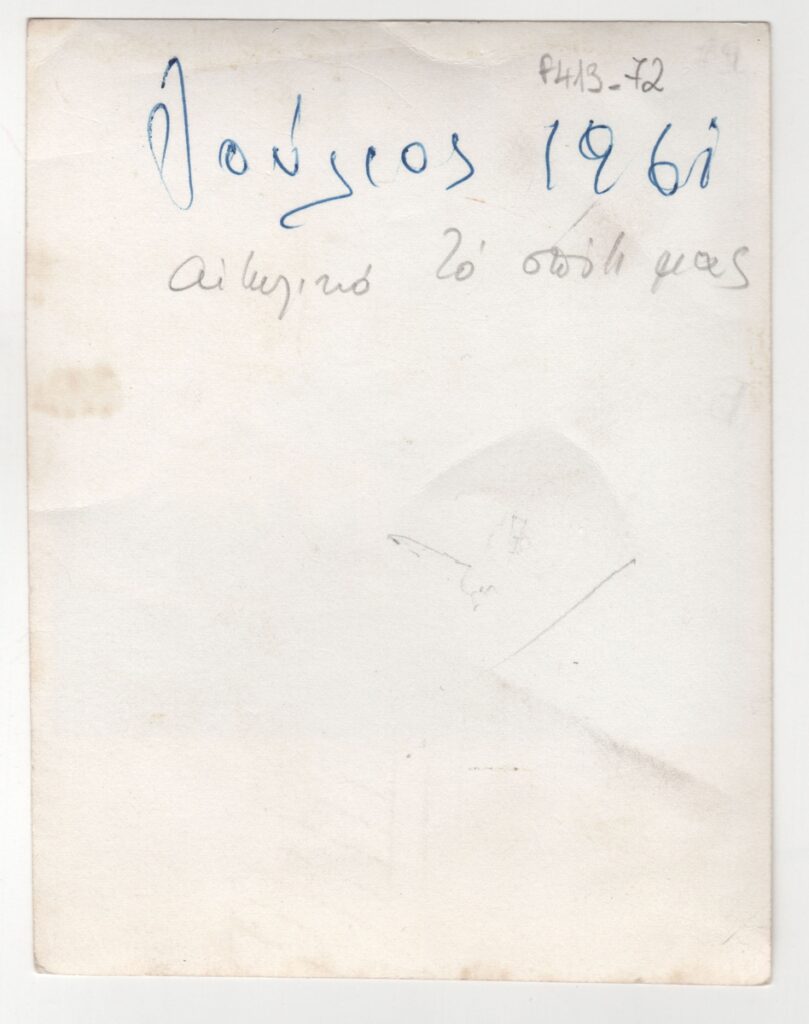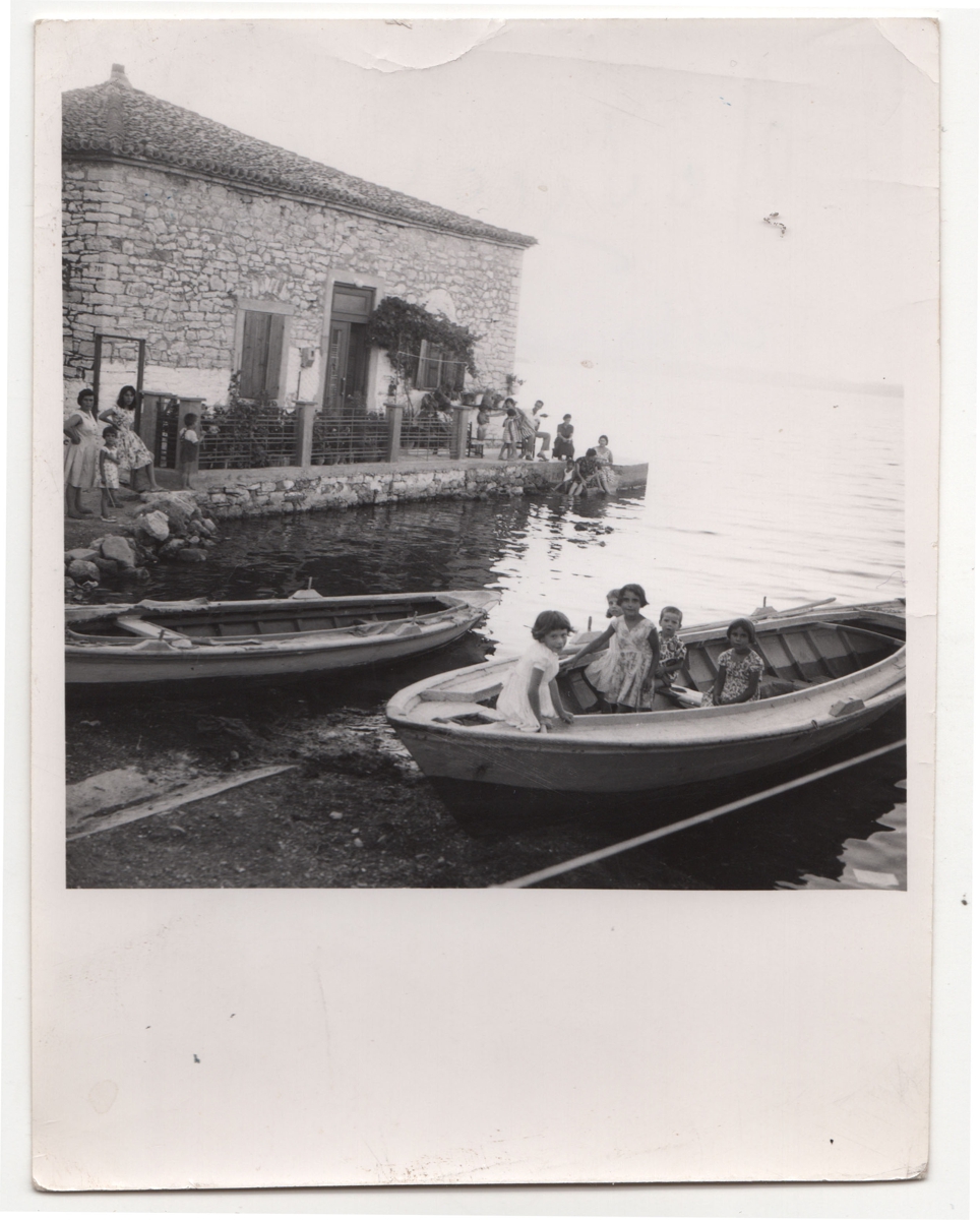Φωτογραφία, α/μ, σε φωτογραφικό χαρτί, 12,7×9,8 εκ. Το παραθαλάσσιο σπίτι της Βάσω Κατράκη στο Αιτωλικό. Στην πίσω όψη επιγραφή.