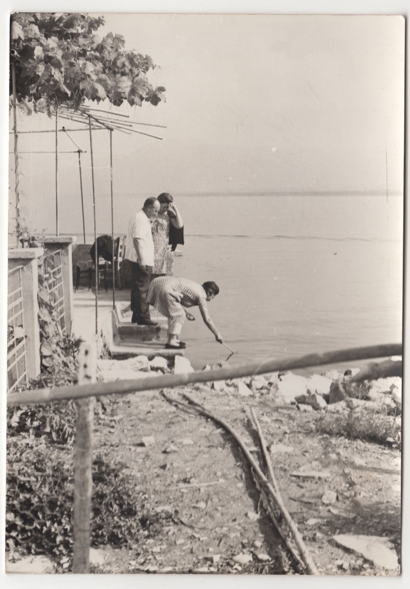 Φωτογραφία, α/μ, σε φωτογραφικό χαρτί, 14,7×10,4 εκ. Η Βάσω Κατράκη στο σπίτι της στο Αιτωλικό. Στην πίσω όψη επιγραφή.