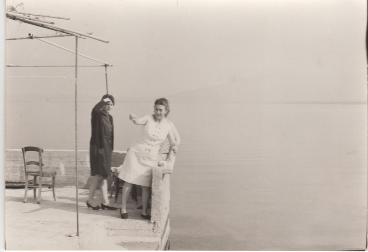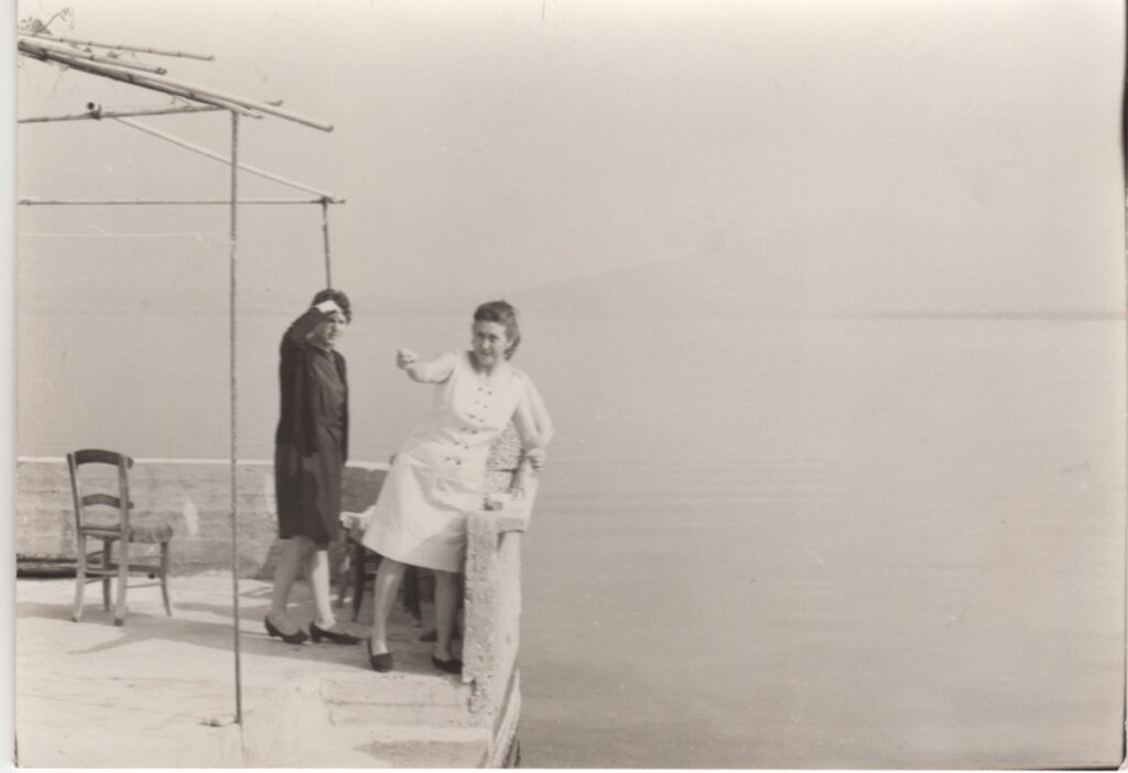 Φωτογραφία, α/μ, σε φωτογραφικό χαρτί, 14,7×10,4 εκ. Η Βάσω Κατράκη στο σπίτι της στο Αιτωλικό. Στην πίσω όψη επιγραφή.