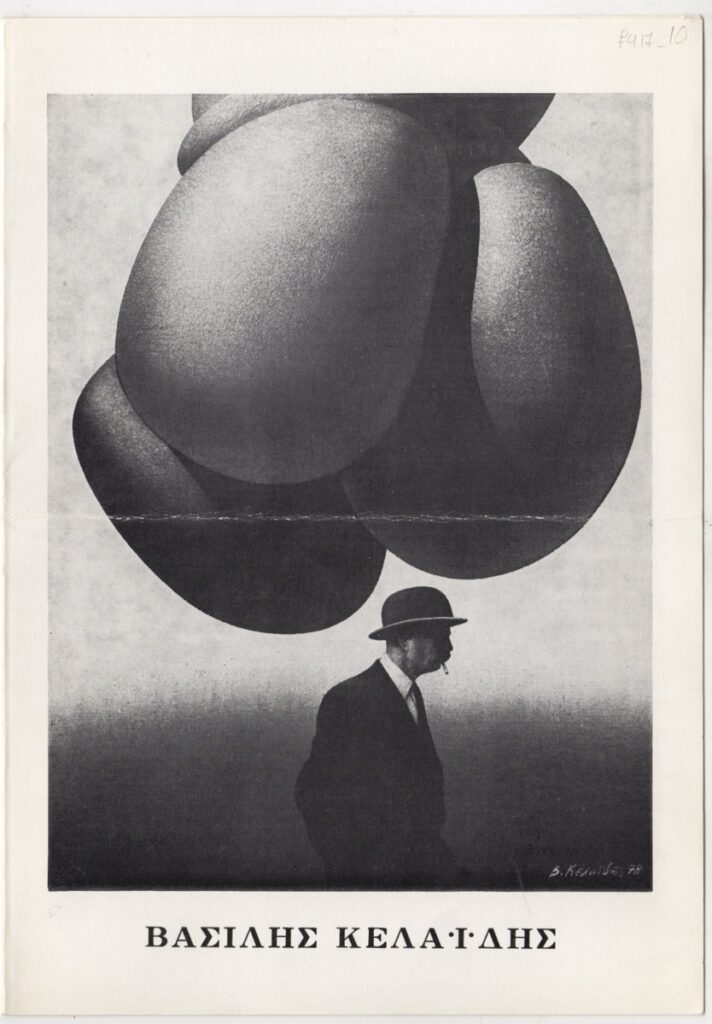 Έντυπο, χαρτόνι αναδιπλωμένο, 25×17,5 εκ., στα ελληνικά, ατομικής έκθεσης ζωγραφικής του Βασίλη Κελαϊδή. Περιέχει βιογραφικό σημείωμα, κείμενο/κριτική της Ελένης Βακαλό για το έργο που παρουσιάζει και εικονογράφηση.