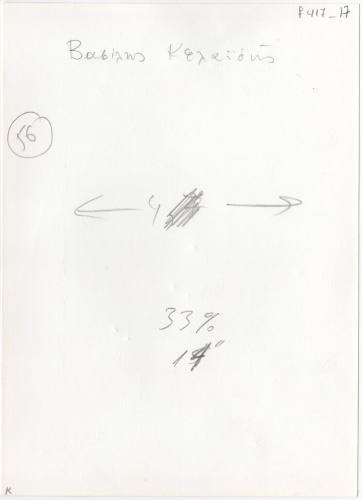 Φωτογραφία, α/μ, φωτογραφικό χαρτί, 18×13 εκ., στα ελληνικά, έργου του Βασίλη Κελαϊδή. Φέρει επιγραφές στις δύο όψεις.