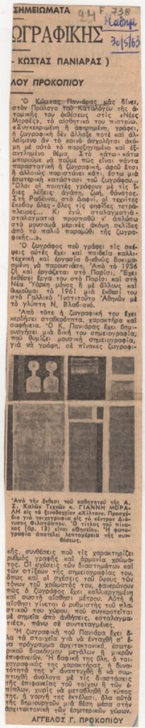 Απόκομμα, χαρτί, 27×5 εκ., στα ελληνικά, δημοσίευσης κριτικής έκθεσης του Κώστα Πανιάρα.