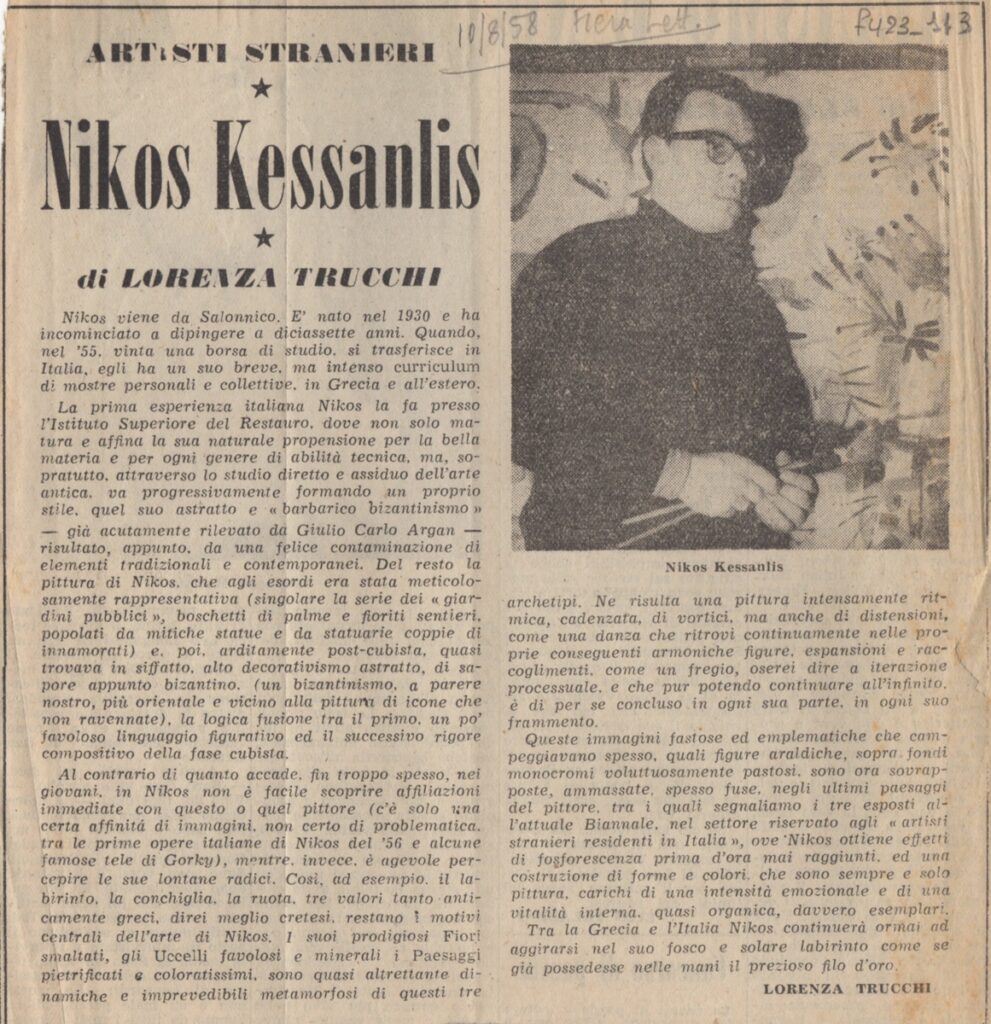 Απόκομμα, χαρτί, 19×19 εκ., στα γαλλικά, δημοσίευσης άρθρου για την καλλιτεχνική πορεία και για το εικαστικό έργο του Νίκου Κεσσανλή.