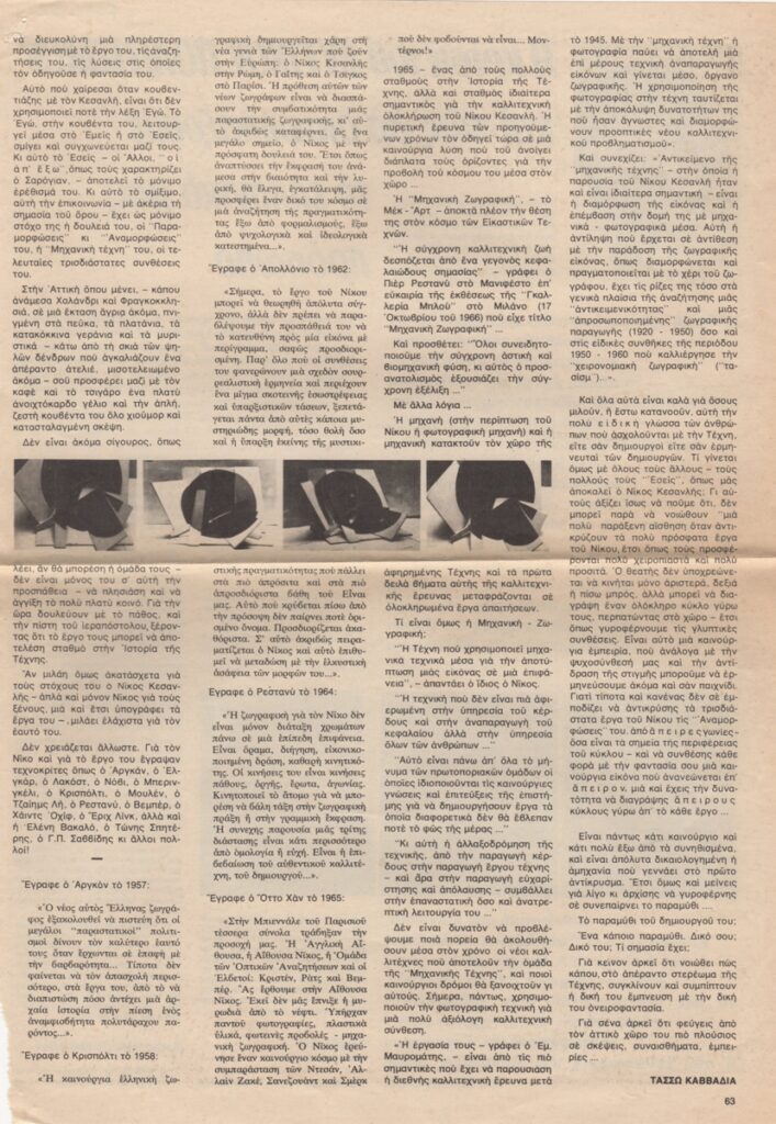 Απόκομμα, χαρτί, 33,5×23,5 εκ., στα ελληνικά, δημοσίευσης άρθρου αναφερόμενου στο εικαστικό έργο του Νίκου Κεσσανλή.
