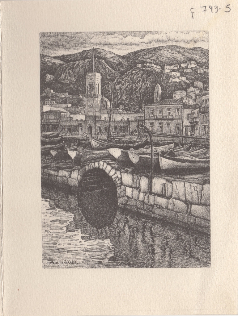 Έντυπο με χειρόγραφο κείμενο, δίπτυχο, χαρτόνι αναδιπλωμένο, 19×14,5 εκ. Κάρτα απεσταλμένη από την Ηλέκτρα Παντελάκη προς το ζεύγος Σπητέρη. Εξωτερικά, αναπαραγωγή έργου του Παύλου Παντελάκη. Εσωτερικά, κείμενο επιστολής στα ελληνικά. Η καλλιτέχνιδα προσκαλεί το ζεύγος σε έκθεση, στην οποία συμμετέχει με έργα της, στο ξενοδοχείο Κάραβελ. Στην πίσω όψη, έντυπη λεζάντα και στοιχεία έκδοσης στα αγγλικά.