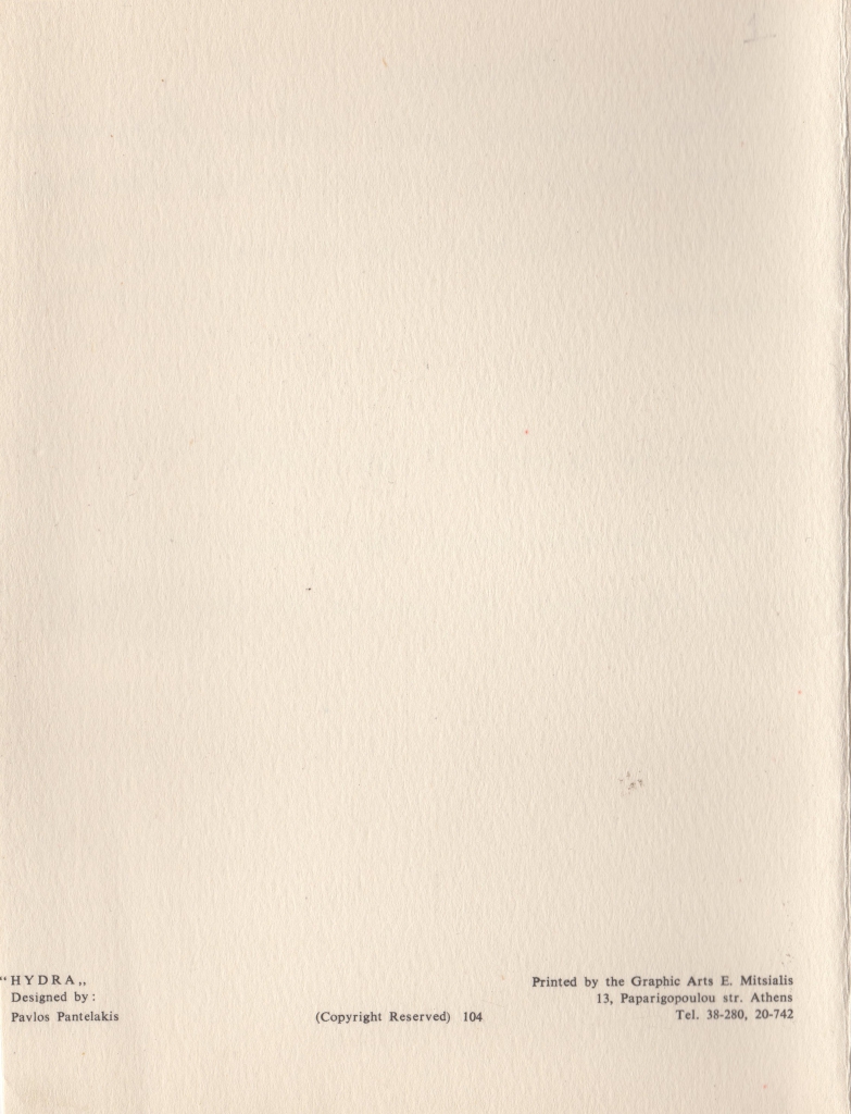 Π. Παντελάκης «Ύδρα» / Επιστολή της Ηλέκτρας Παντελάκη προς το ζεύγος Σπητέρη