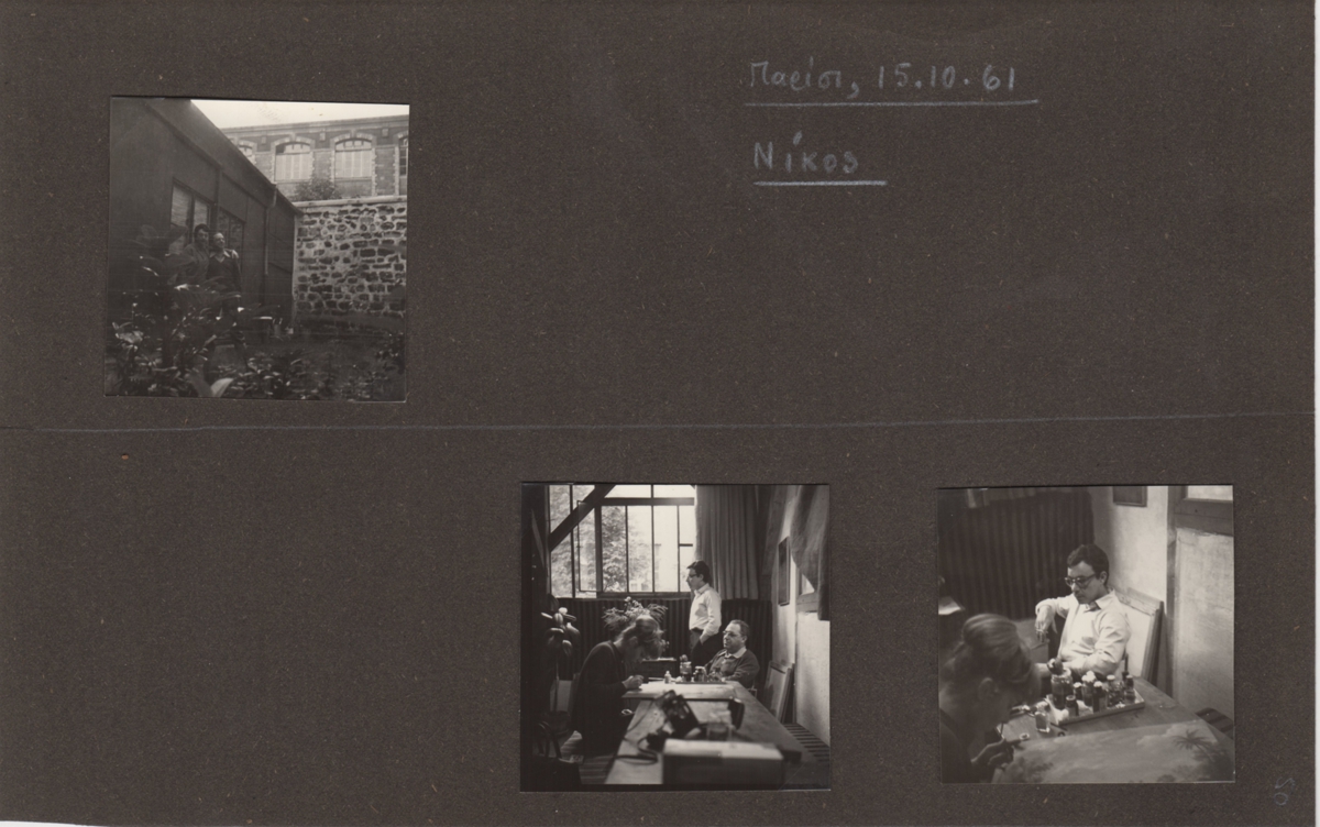 Φωτογραφίες (3), α/μ, φωτογραφικό χαρτί, 6×6 εκ., σε χαρτόνι, 15,5×24,5 εκ., με το Νίκο Κεσσανλή και το ζεύγος Σπητέρη. Φέρει επιγραφές.