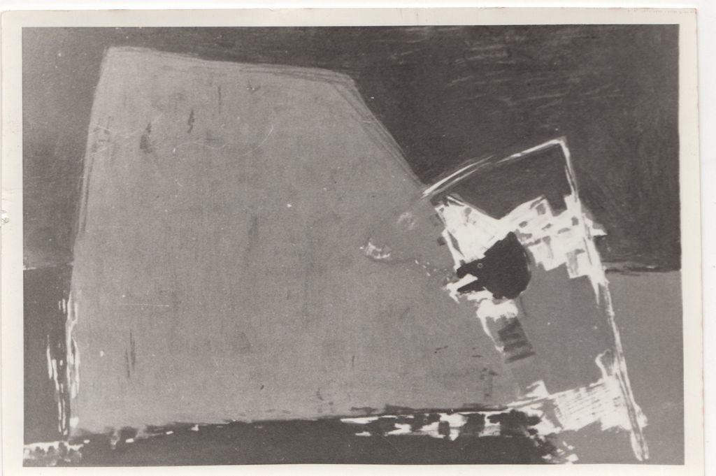 Φωτογραφία, α/μ, φωτογραφικό χαρτί, 8,7×12,8 εκ. Αναπαραγωγή έργου του Γιάννη Παπαδάκη. Στην πίσω όψη, επιγραφή με τα στοιχεία του έργου.