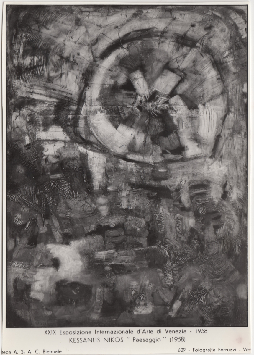 Φωτογραφία, α/μ, φωτογραφικό χαρτί, 21×15 εκ., έργου του Νίκου Κεσσανλή, το οποίο παρουσιάστηκε στην Biennale Βενετίας 1958.
