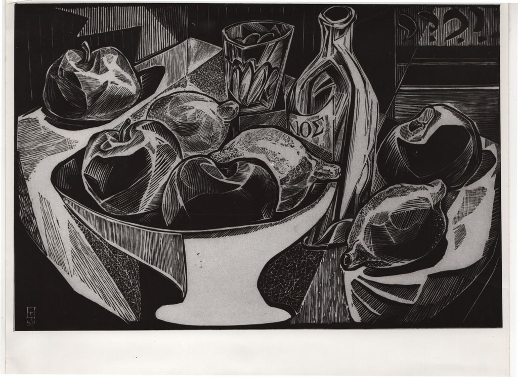 Φωτογραφία, α/μ, φωτογραφικό χαρτί, 18,2×24,0 εκ. Αναπαραγωγή έργου του Ευθύμη Παπαδημητρίου (νεκρή φύση). Στην πίσω όψη, επιγραφή με το όνομα του καλλιτέχνη.