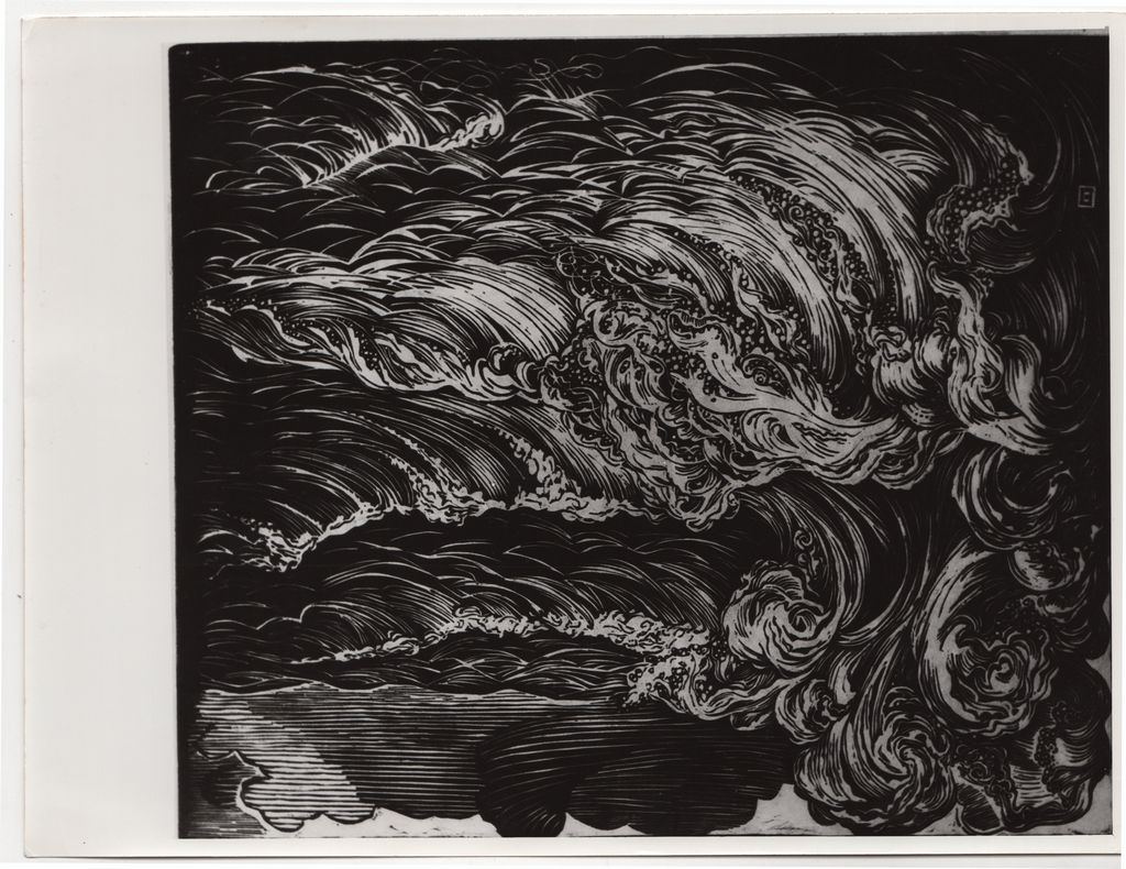 Φωτογραφία, α/μ, φωτογραφικό χαρτί, 24,0×18,3 εκ. Αναπαραγωγή έργου του Ευθύμη Παπαδημητρίου (θαλασσογραφία). Στην πίσω όψη, επιγραφή.