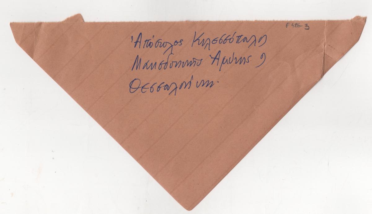 Απόκομμα, χειρόγραφο, χαρτί ακανόνιστου μεγέθους, στα ελληνικά, με αναγραφόμενη τη διεύθυνση του Απόστολου Κιλεσσόπουλου.