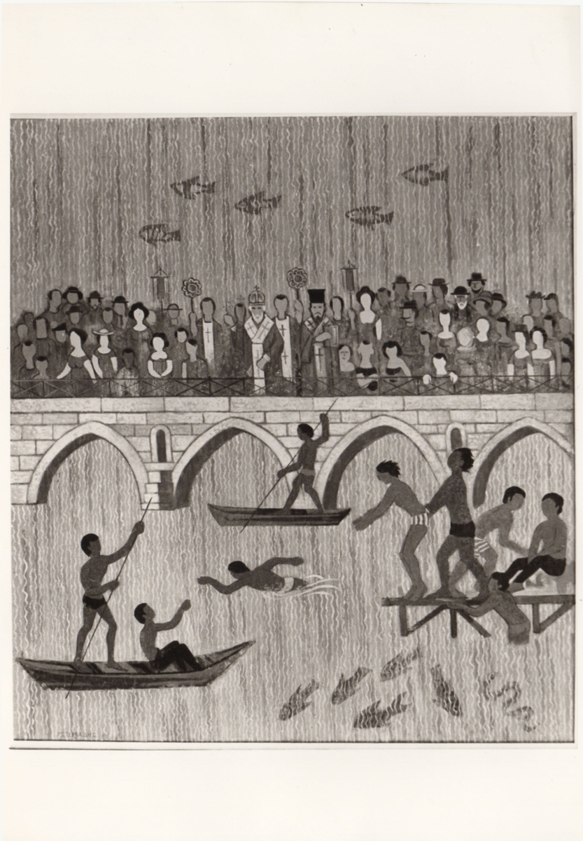 Φωτογραφία, α/μ, φωτογραφικό χαρτί, 18,0×13,8 εκ. Αναπαραγωγή έργου του Αγήνορα Αστεριάδη. Στην πίσω όψη επιγραφή, όπου αναφέρεται ότι το έργο παρουσιάστηκε στην αναδρομική έκθεση έργων του καλλιτέχνη που διοργανώθηκε από την Εθνική Πινακοθήκη στην Αθήνα το 1976.