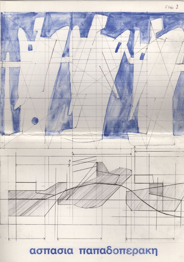 Έντυπο, στα ελληνικά, δίπτυχο, χαρτόνι, 34,5×24,5 εκ. Έντυπο της ατομικής έκθεσης της Ασπασίας Παπαδοπεράκη στην Αθήνα τον Απρίλιο του 1978. Περιέχει κείμενο της καλλιτέχνιδας.