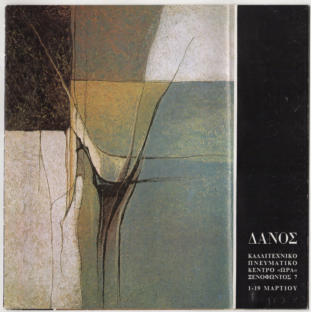 Έντυπο, χαρτί δίπτυχο, 23×23 εκ., στα ελληνικά, ατομικής έκθεσης του Δάνου Παπαδόπουλου. Περιέχει κείμενο του Στέλιου Λυδάκη για το έργο που παρουσιάζεται και εικονογράφηση.
