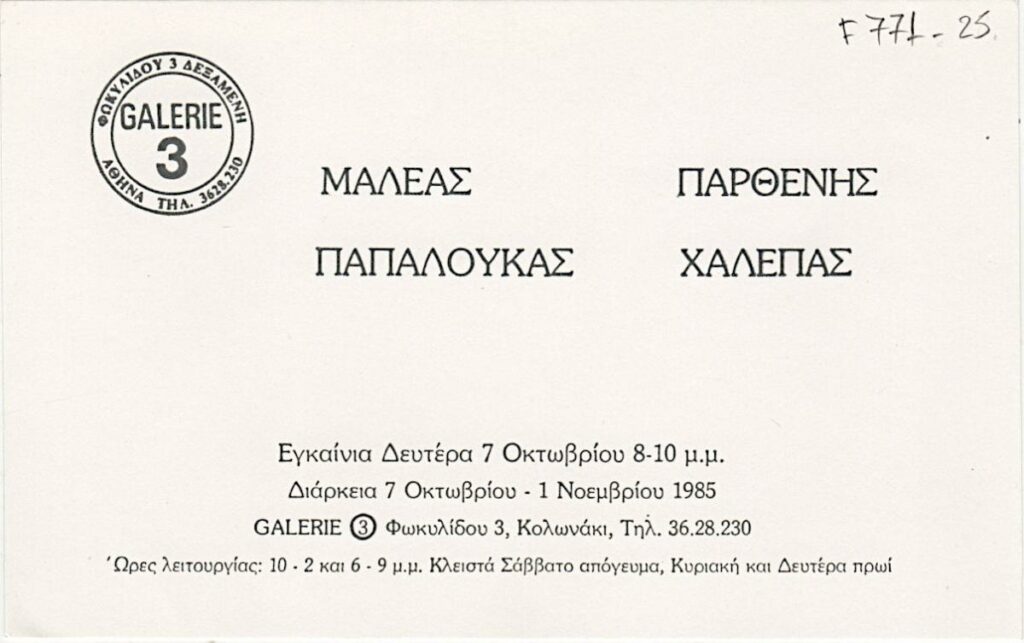 Πρόσκληση εγκαινίων έκθεσης στην Γκαλερί 3 στην Αθήνα.