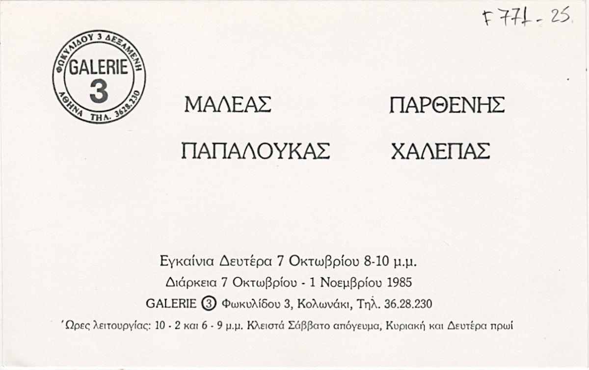 Έκθεση Μαλέα, Παπαλουκά, Παρθένη, Χαλεπά
