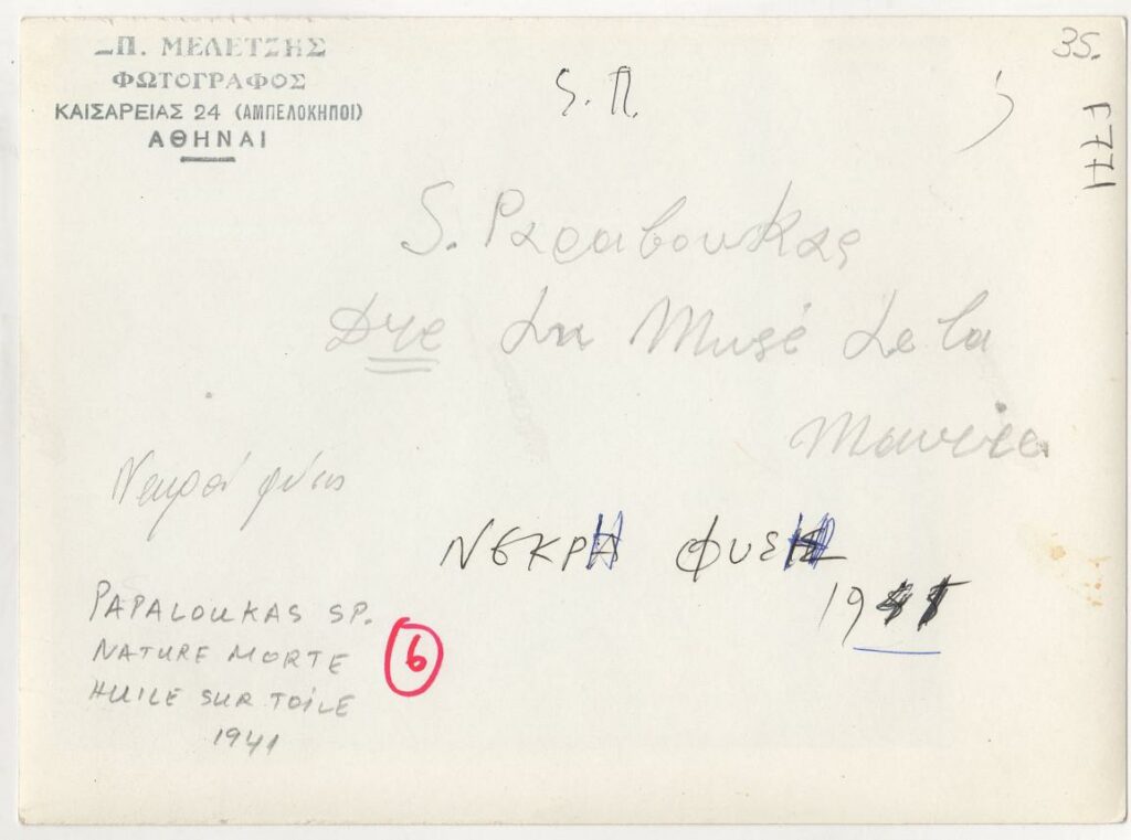 S. Papaloukas, Du Musée de la Mairie, 'Νεκρή Φύση', 1941- Papaloukas S. 'Nature Morte', Huile sur toile, 1941