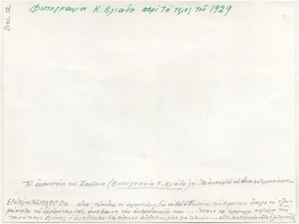 Φωτογραφία, α/μ, φωτογραφικό χαρτί, 18,5×24 εκ., θέας που προβάλλεται από το καλλιτεχνικό έργαστήριο του Κωνσταντίνου Παρθένη.