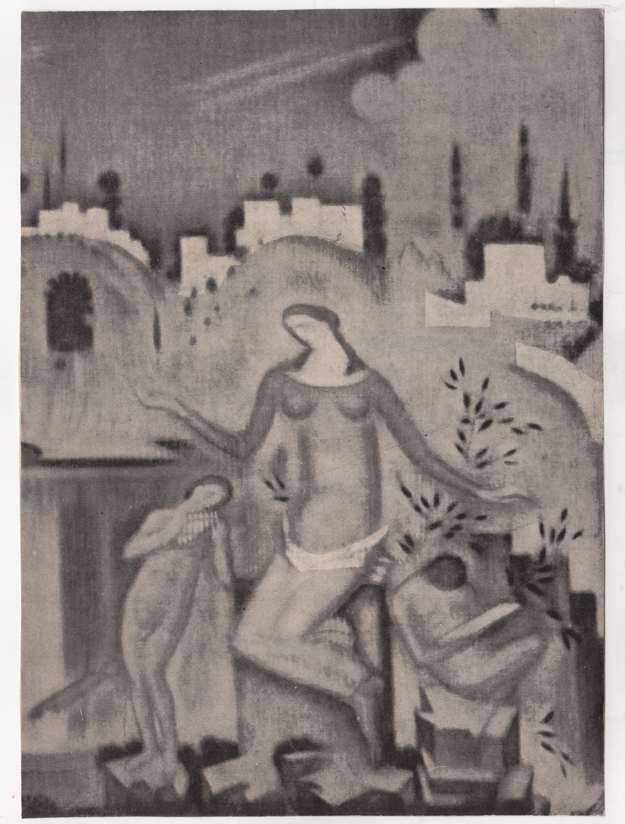 Απόκομμα εντύπου, χαρτί, 22×16 εκ., με αναπαραγωγή έργου, α/μ, του Κωνσταντίνου Παρθένη.