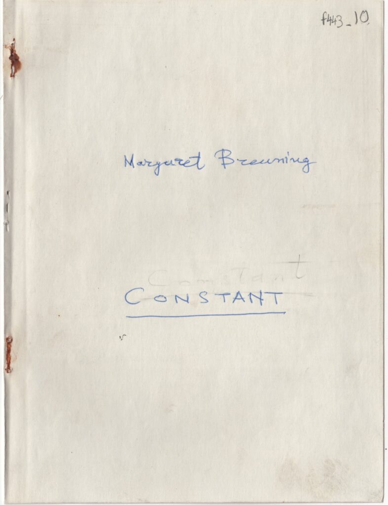Φωτοαντίγραφο της μονογραφίας της Margaret Breaning για τον έλληνα ζωγράφο Κονστάντ, στα αγγλικά, χαρτί, 12 φφ., 19,0×14,4 εκ. Περιέχει μία αναπαραγωγή έργου. Στο εξώφυλλο επιγραφή με τον συγγραφέα και τίτλο της μονογραφίας.