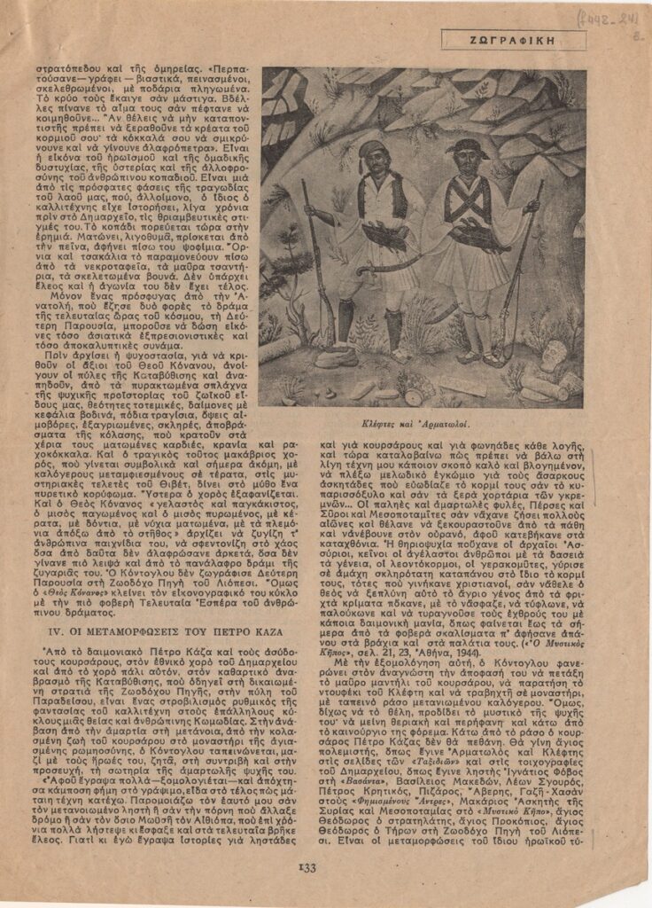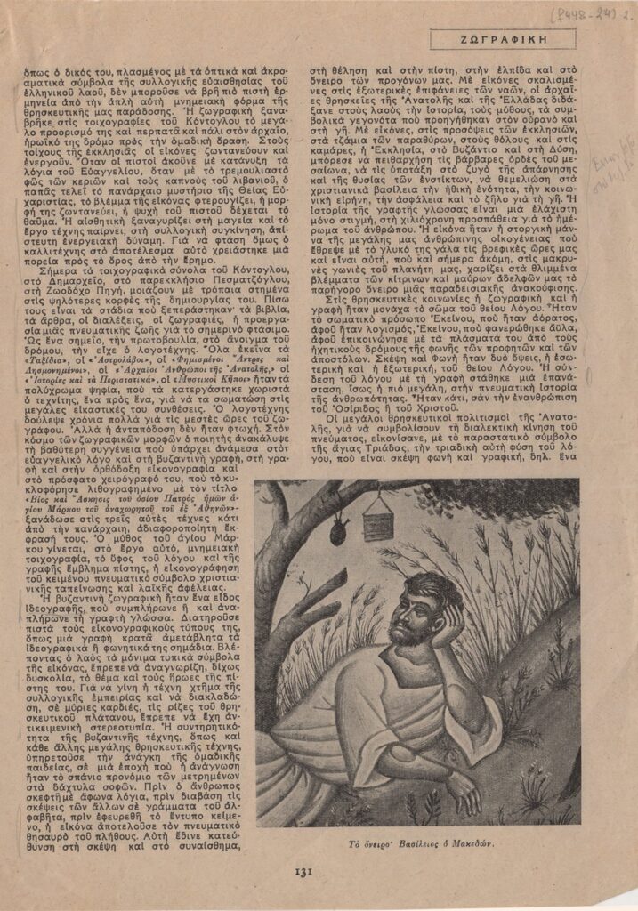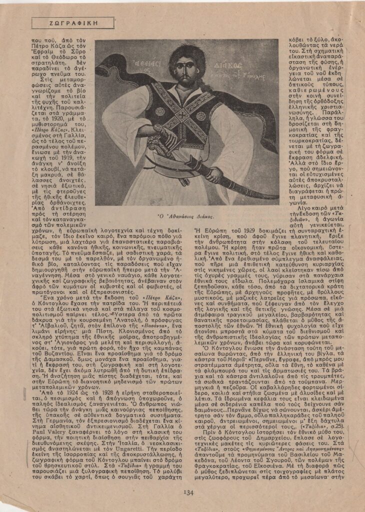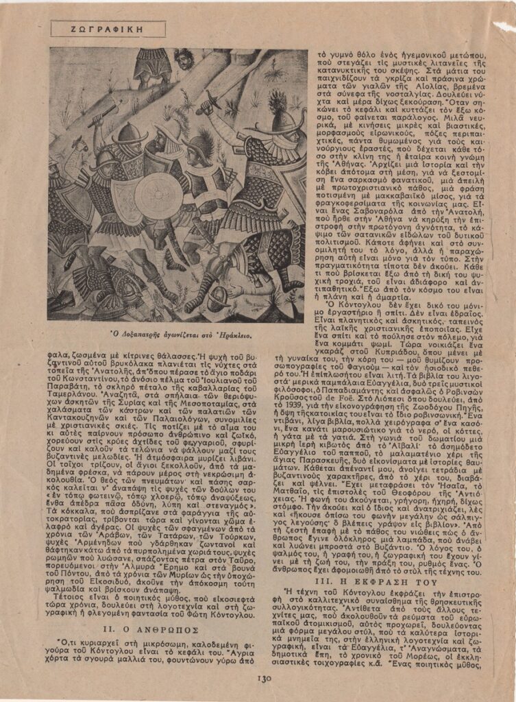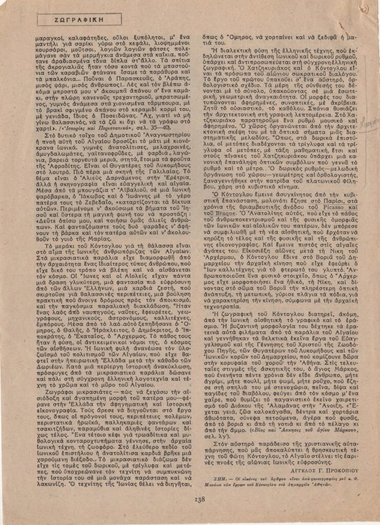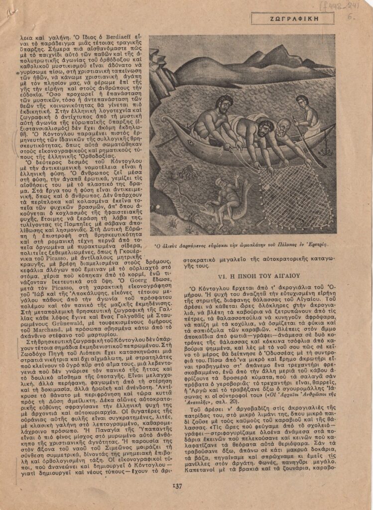 Απόκομμα του περιοδικού “Αγγλοελληνική Επιθεώρηση”, τεύχος 09/1947, δημοσίευσης άρθρου για τη ζωή και το έργο του Φώτη Κόντογλου.