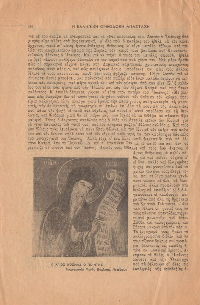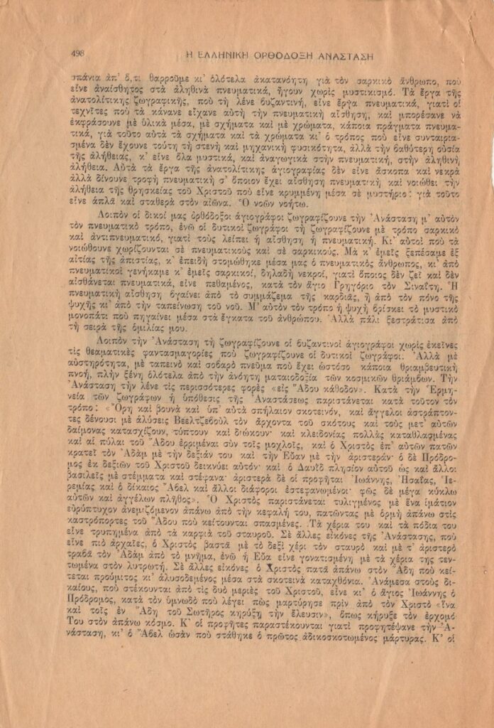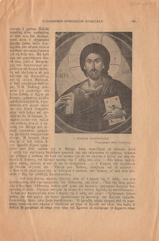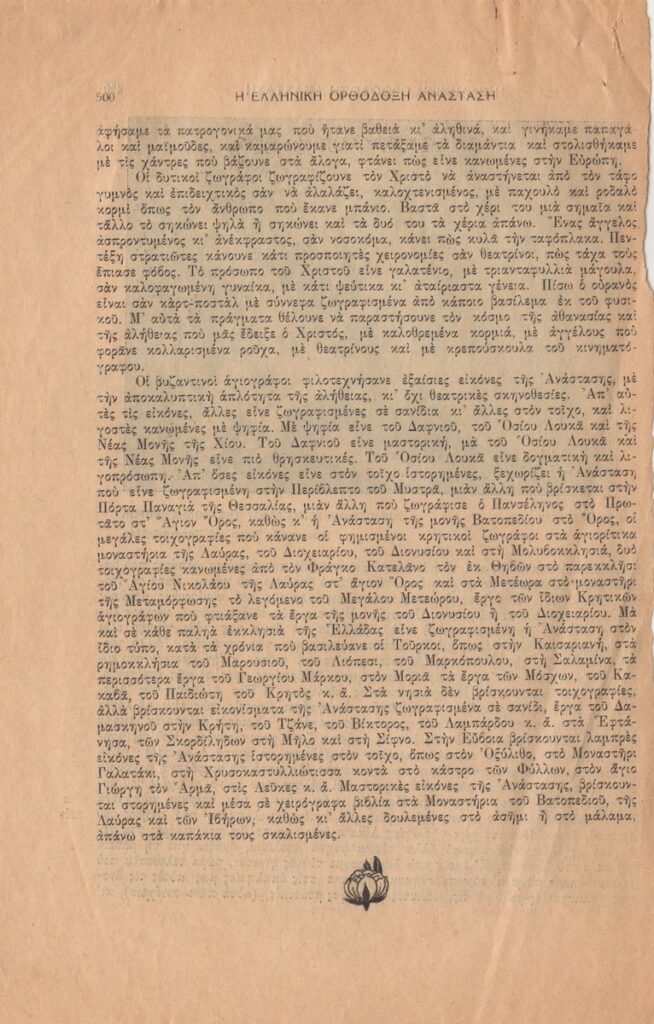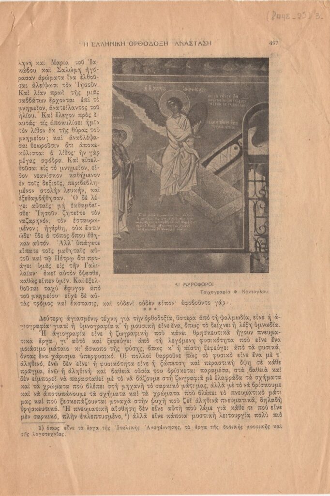 Απόκομμα του περιοδικού “Ελληνική Δημιουργία” (1950) δημοσίευσης άρθρου του Φώτη Κόντογλου.