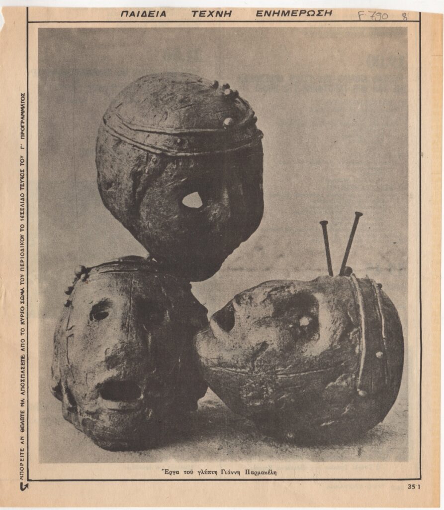Απόκομμα εντύπου, χαρτί, 23,5×21 εκ., με αναπαραγωγή έργου, α/μ, του Γιάννη Παρμακέλη.