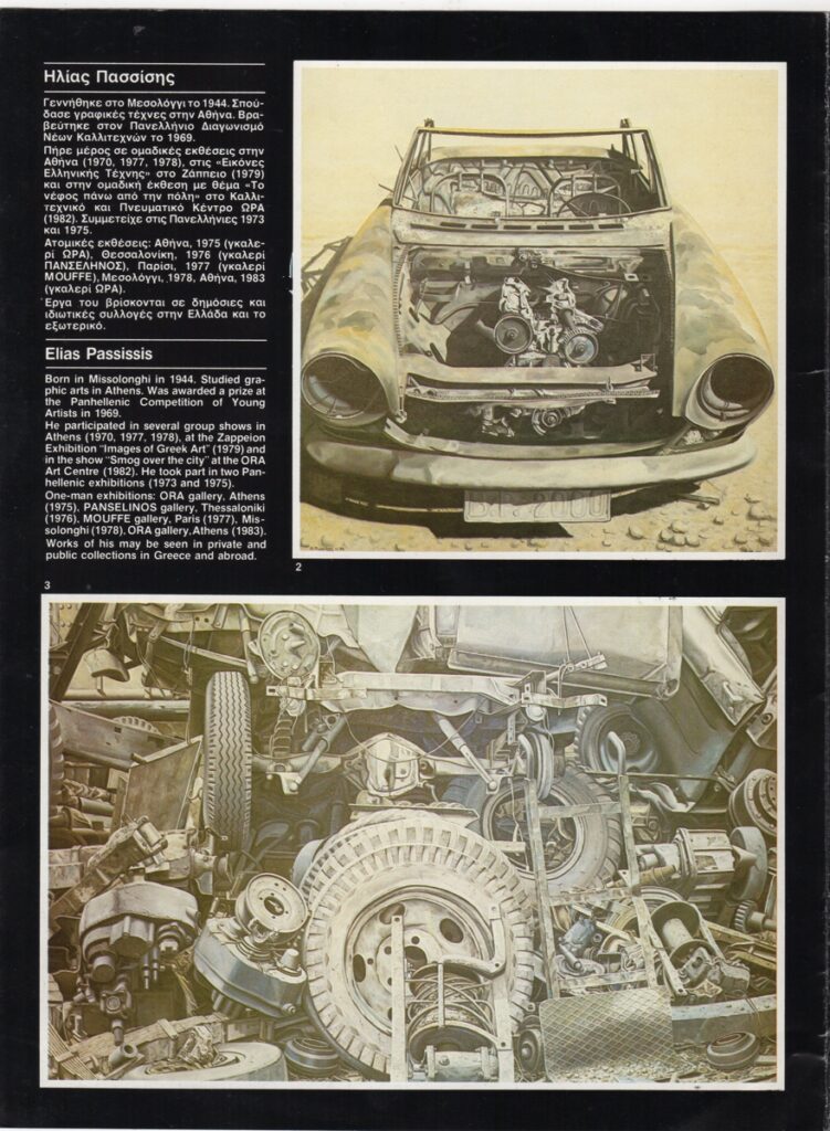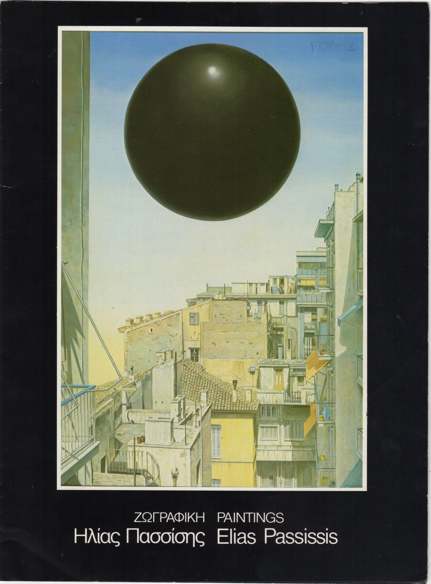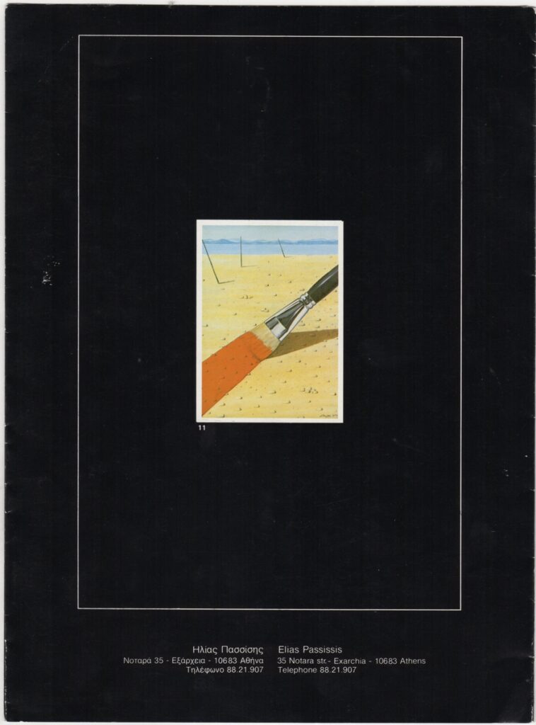 Έντυπο, χαρτί δίπτυχο, 27×20 εκ., στα ελληνικά και αγγλικά, ατομικής έκθεσης ζωγραφικής του Ηλία Πασσίση.