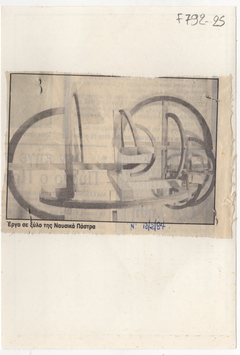 Απόκομμα, χαρτί συρραμμένο σε έντυπο, 16×11 εκ., με αναπαραγωγή έργου, α/μ, της Ναυσικάς Πάστρα.