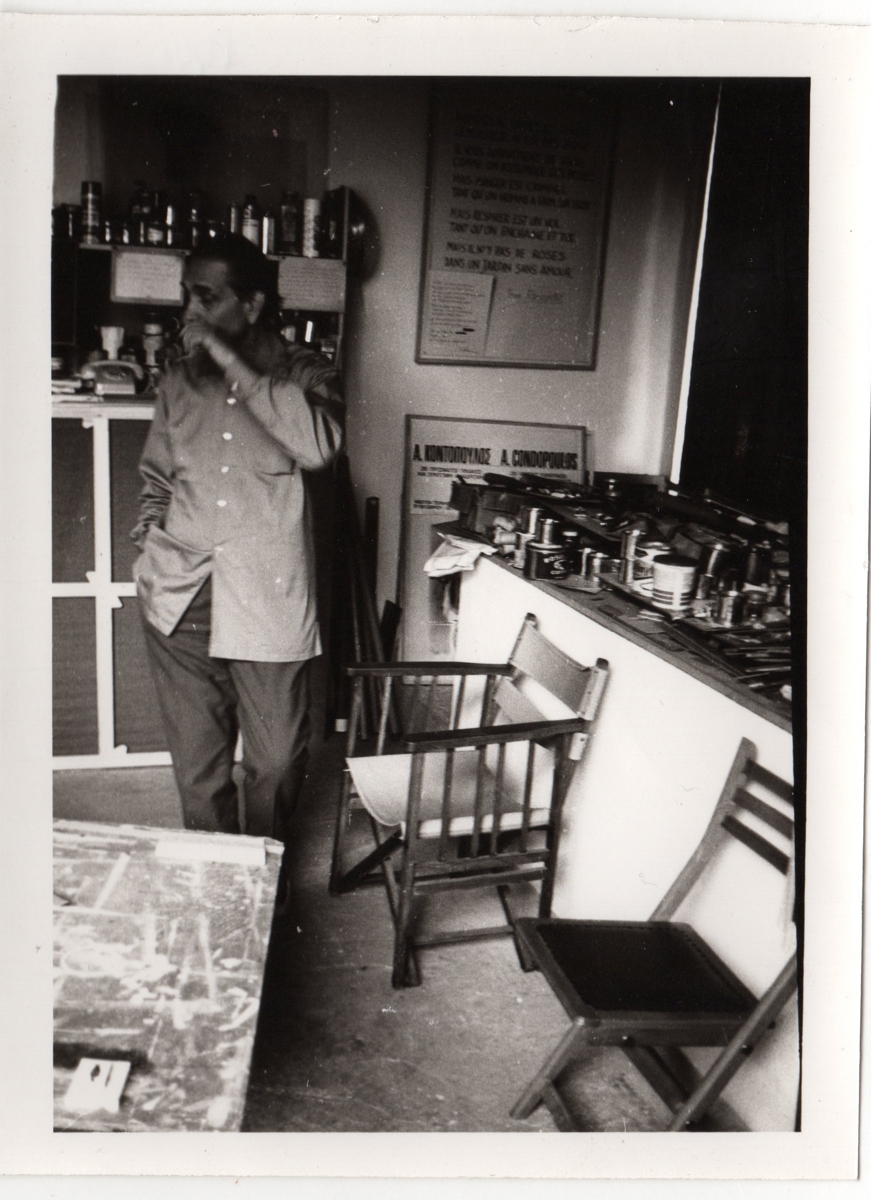 Φωτογραφία, α/μ, σε φωτογραφικό χαρτί, 12,0×9,0 εκ. Ο ζωγράφος Αλέκος Κοντόπουλος στο εργαστήριό του.