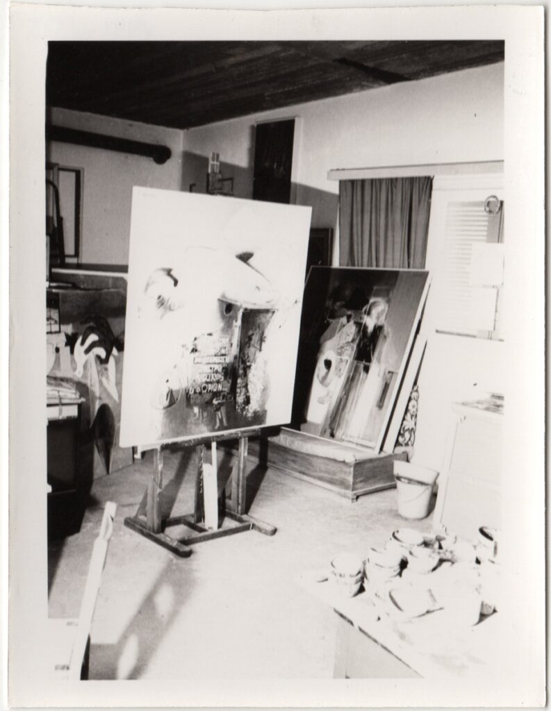 Φωτογραφία, α/μ, σε φωτογραφικό χαρτί, 12,0×9,0 εκ. Το εργαστήριό του ζωγράφου Αλέκου Κοντόπουλου.