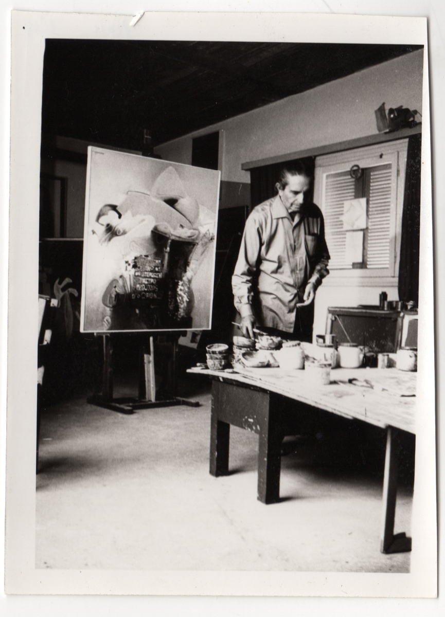 Φωτογραφία, α/μ, σε φωτογραφικό χαρτί, 12,0×9,0 εκ. Ο ζωγράφος Αλέκος Κοντόπουλος στο εργαστήριό του.