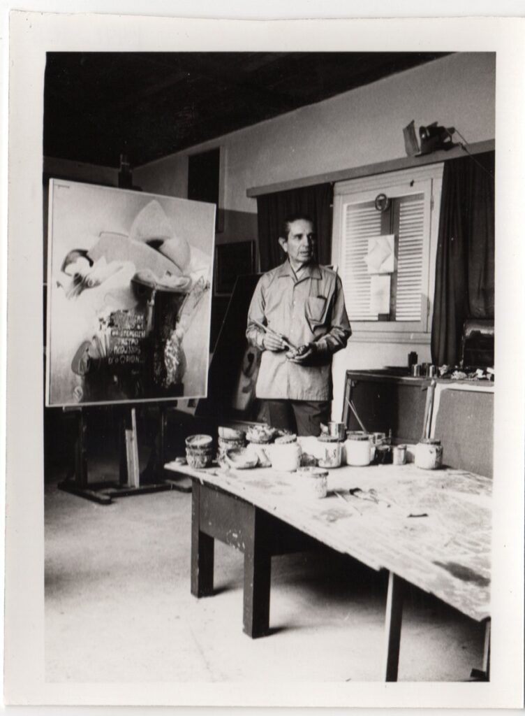 Φωτογραφία, α/μ, σε φωτογραφικό χαρτί, 12,0×9,0 εκ. Ο ζωγράφος Αλέκος Κοντόπουλος στο εργαστήριό του.