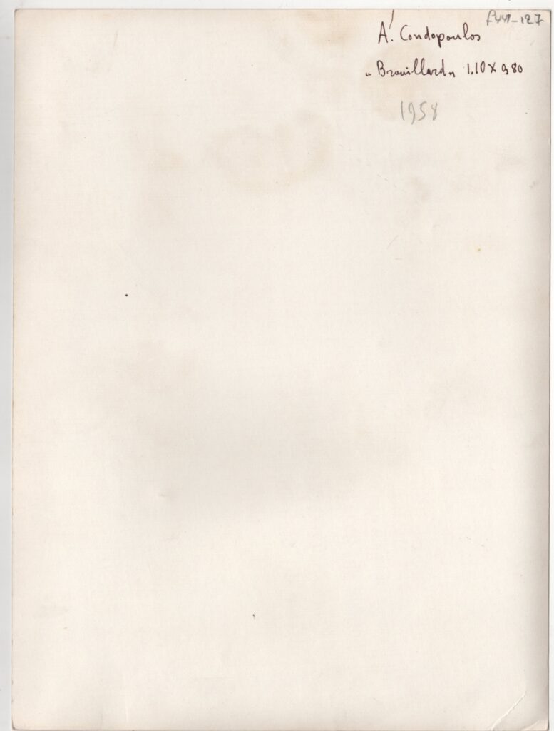 Φωτογραφία έργου, α/μ, σε φωτογραφικό χαρτί, 24,3×18,0 εκ. Στην πίσω όψη επιγραφές.