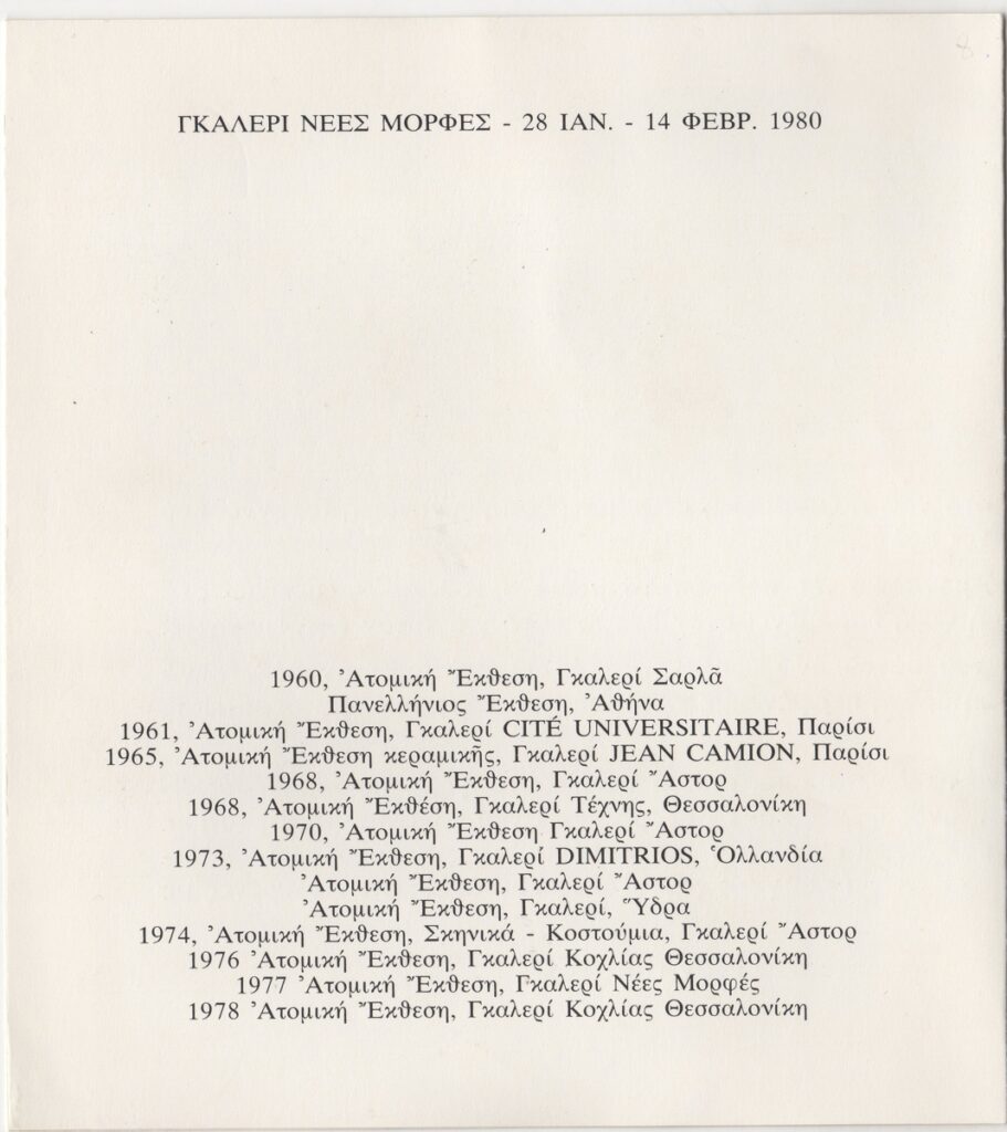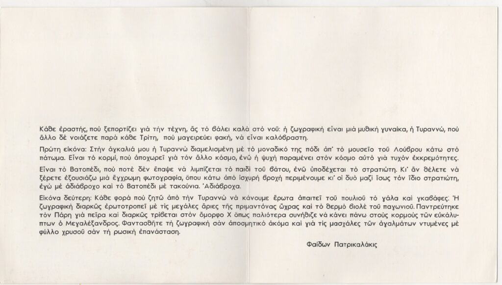 Έντυπο, χαρτόνι, 20×18 εκ., στα ελληνικά, ατομικής έκθεσης του Φαίδωνα Πατρικαλάκι.