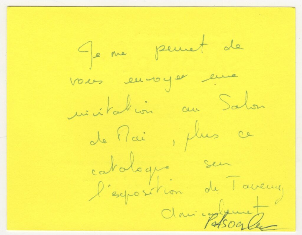 Πρόσκληση, χαρτόνι, 10,5×13 εκ., στα γαλλικά, ομαδικής έκθεσης στο Παρίσι.