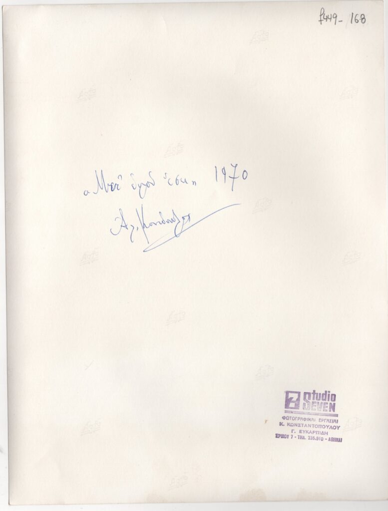 Φωτογραφία έργου, α/μ, σε φωτογραφικό χαρτί, 24,0×18,3 εκ. Στην πίσω όψη επιγραφή και σφραγίδα φωτογράφου.