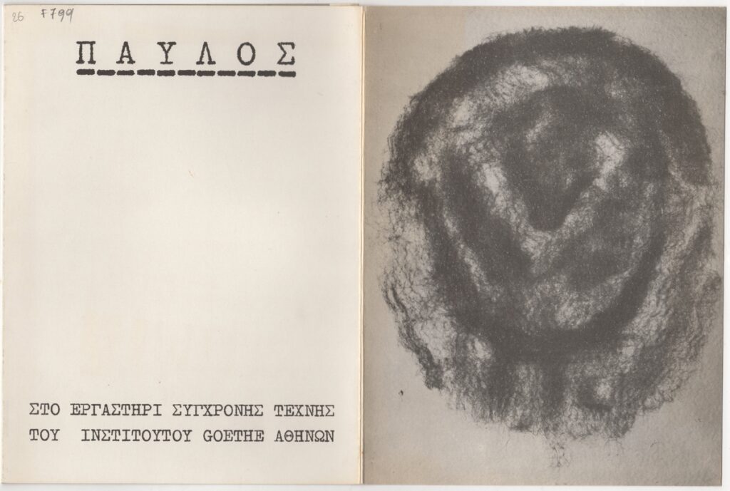 Έντυπο, χαρτόνι τρίπτυχο, 2216,5 εκ., στα ελληνικά και γερμανικά, ατομικής έκθεσης του Παύλου (Διονυσόπουλου).
