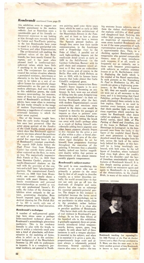 Απόκομμα, χαρτί ιλουστρασιόν, 31×16,5 εκ., στα αγγλικά, δημοσίευσης κειμένου για τον Rembrandt.