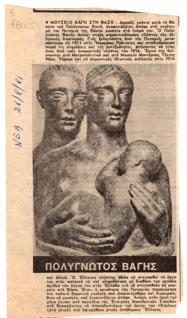 Alexander Calder (1898 - 1976) ; Richard Lippold ; Auguste Rodin (1840 - 1917) ; Henry Moore (1898 - 1986) ; Jean Arp (1886 - 1966) ; Jacques Lipchitz ; Henri Laurens (1885 - 1954) ; Kazimir Malevich ; Aleksandr Rodchenko ; Έφη Φερεντίνου (1915 - 1979) ; Aristide Maillol (1861 - 1944) ; Laszlo Moholy-Nagy ; Vladimir Tatlin ; Marcel Duchamp (1887 - 1968) ; Raymond Duchamp-Villon (1876 - 1918) ; Charles Despiau (1874 - 1946) ; Naum Gabo ; Antoine Pevsner ; Max Bill (1908 - 1994) ; Umberto Boccioni (1882 - 1916) ; Constantin Brancusi (1876 - 1957) ; Alexander Archipenko (1887 - 1964) ; Πολύγνωτος Βαγής (1894 - 1965) ; Ibram Lassaw ; Brauer ; Theodore Roszak ; Gaston Lachaise ; William Zorach ; Calvin Albert (1918 - 2007) ; Daniel Chester French ; Anna Vaughan Hyatt Huntington ; Paul Manship ; Joseph Davidson ; Malvina Cornell Hoffman ; Gertrude Vanderbilt- Whitney ; Oronzio Maldarelli ; Jose Mariano de Creeft ; John Bernard Flannagan ; Ray Gussow ; Stuart Harwood ; David Hare ; Frederick J. Kiesler ; Guitou Knoop ; Felix Aime del Marle ; Burgoyne Diller ; Jose de Rivera ; Herbert Ferber