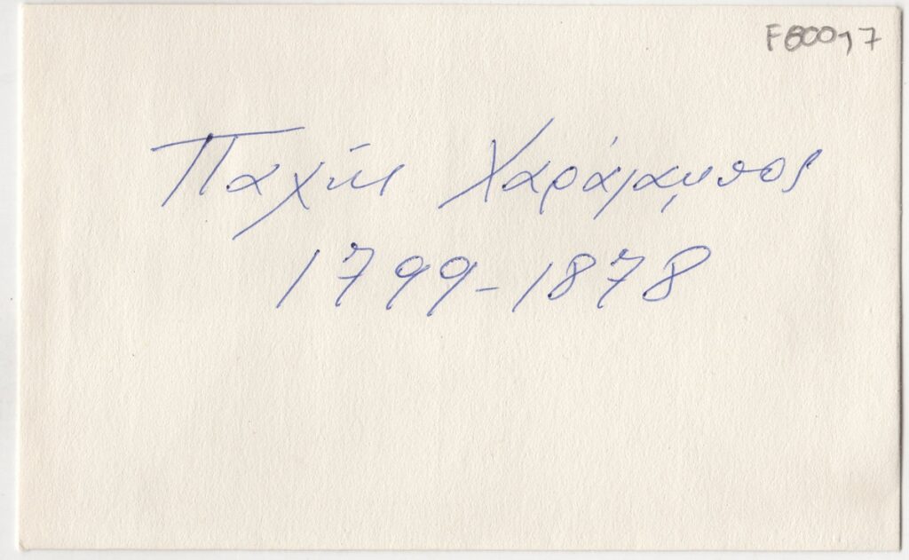 Φάκελος, χαρτί, 10×15.5 εκ., στα ελληνικά, με αναγραφόμενο το όνομα του Χαράλαμπου Παχή.