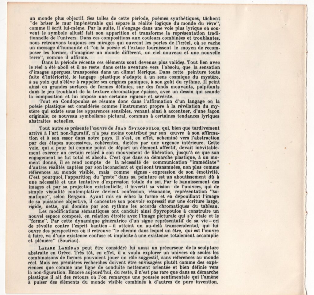 Απόκομμα εντύπου έκθεσης, στα γαλλικά,χαρτί, 3 φφ, 18,0×18,6 εκ. Απόκομμα της γαλλικής έκδοσης του καταλόγου της ελληνικής συμμετοχής στην Biennale της Βενετίας το 1960. Περιλαμβάνει τον πρόλογο, το βιογραφικό του ζωγράφου Αλέκου Κοντόπουλου, κείμενο του Τώνη Σπητέρη για τον καλλιτέχνη, κατάλογο έργων και αναπαραγωγή ενός έργου.